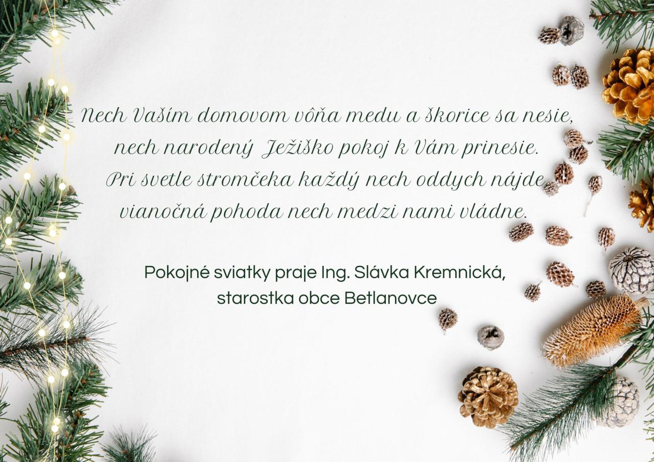 Vianočná pohľadnica Ing. Slávky Kremnickej starostky obce Betlanovce