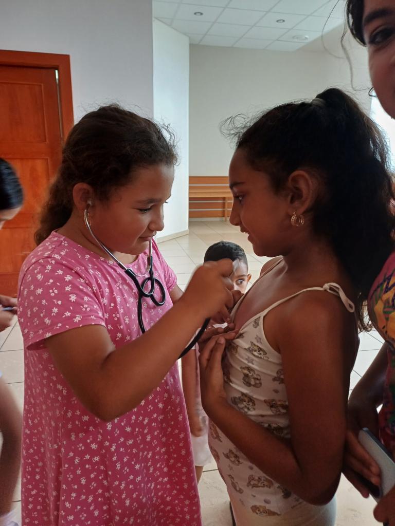Aj počas prázdnin sa venujeme deťom na aktivitách. Tentokrát si pracovníčka pre mládež pripravila aktivitu zameranú na zopakovanie si funkcii jednotlivých častí tela. Pomocou fonendoskopu si vypočuli tlkot srdca. Na ďalšej pravidelnej aktivite zasa upratovali verejné priestranstvo a na tanečnom krúžku pokračovali v cvičení krokov a choreografie.