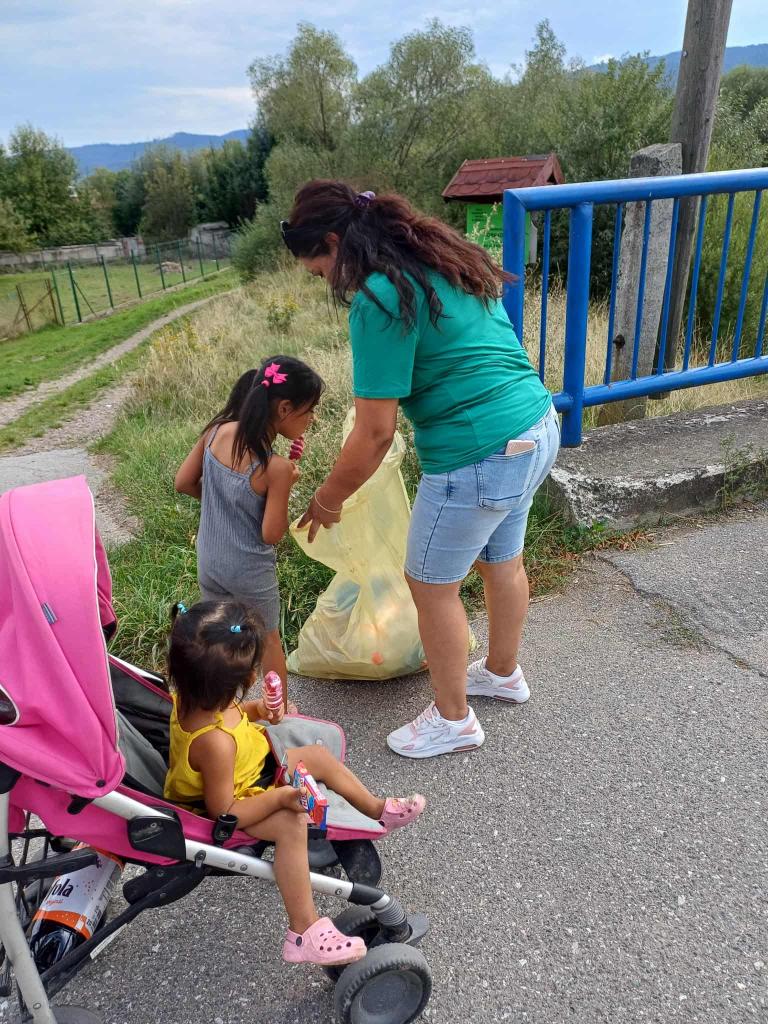 Ďalšou pravidelnou aktivitou, ktorú realizovala bolo zbieranie a triedenie odpadkov v sídelnej komunite, do ktorej sa zapojili aj staršie deti.