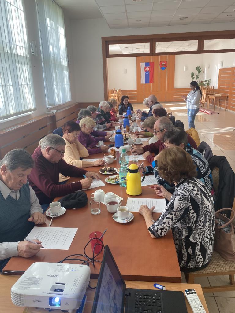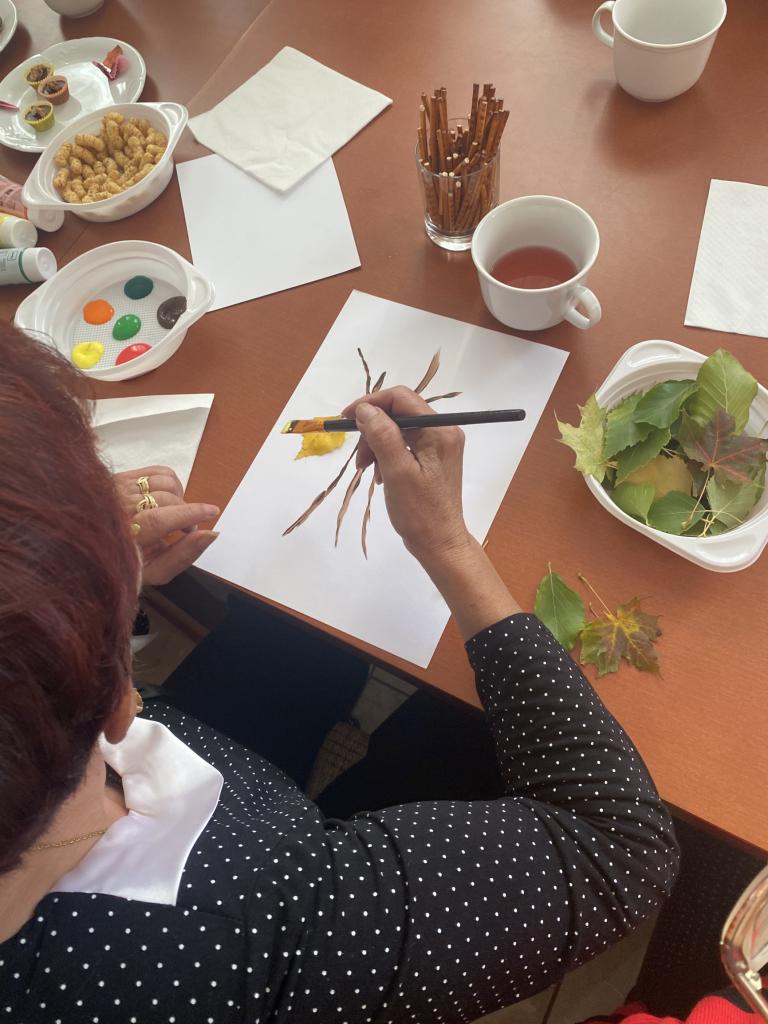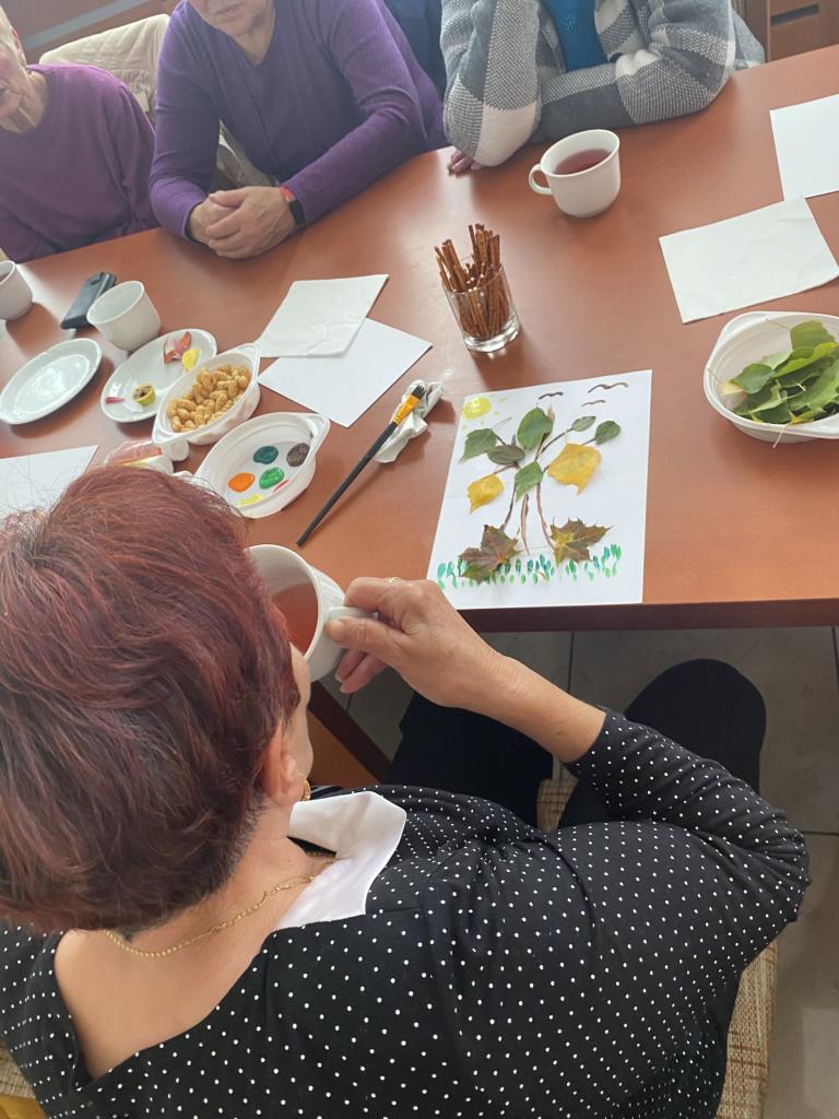 Aktivitou „Čaj o piatej“ sme začali tento týždeň so seniormi. Vytvorili sme im priestor na stretnutie, rozhovory a ponúkli maľovanie jesene rôznymi technikami.