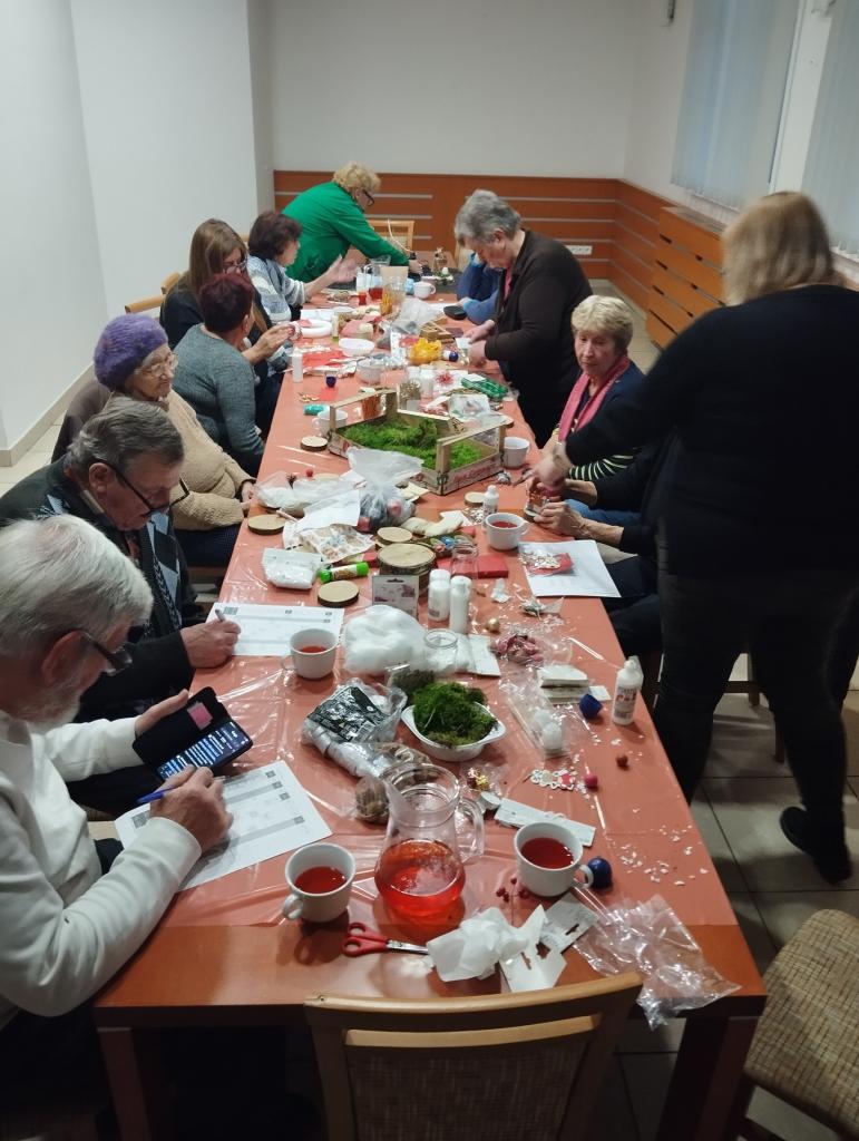 Tento týždeň sme začali „Čajom o piatej.“ Aktivitou pre seniorov. Okrem príjemného posedenia, lúštenia krížoviek, či sudoku, si mohli seniori vytvoriť vianočné dekorácie do domácnosti.