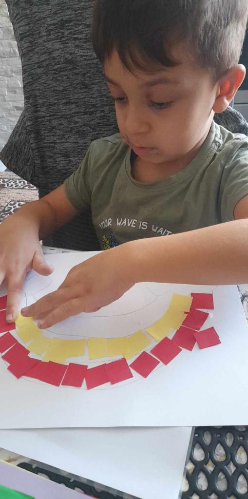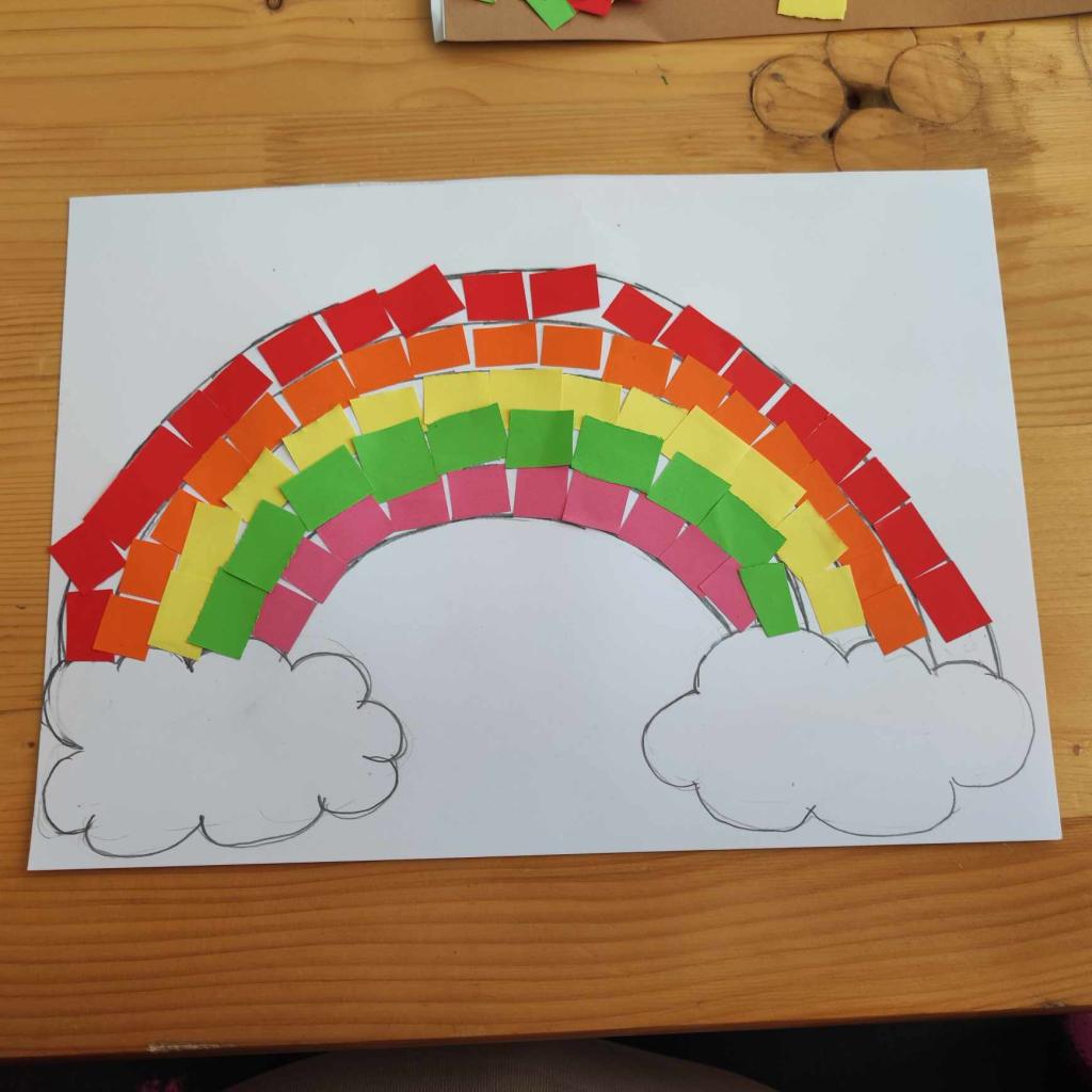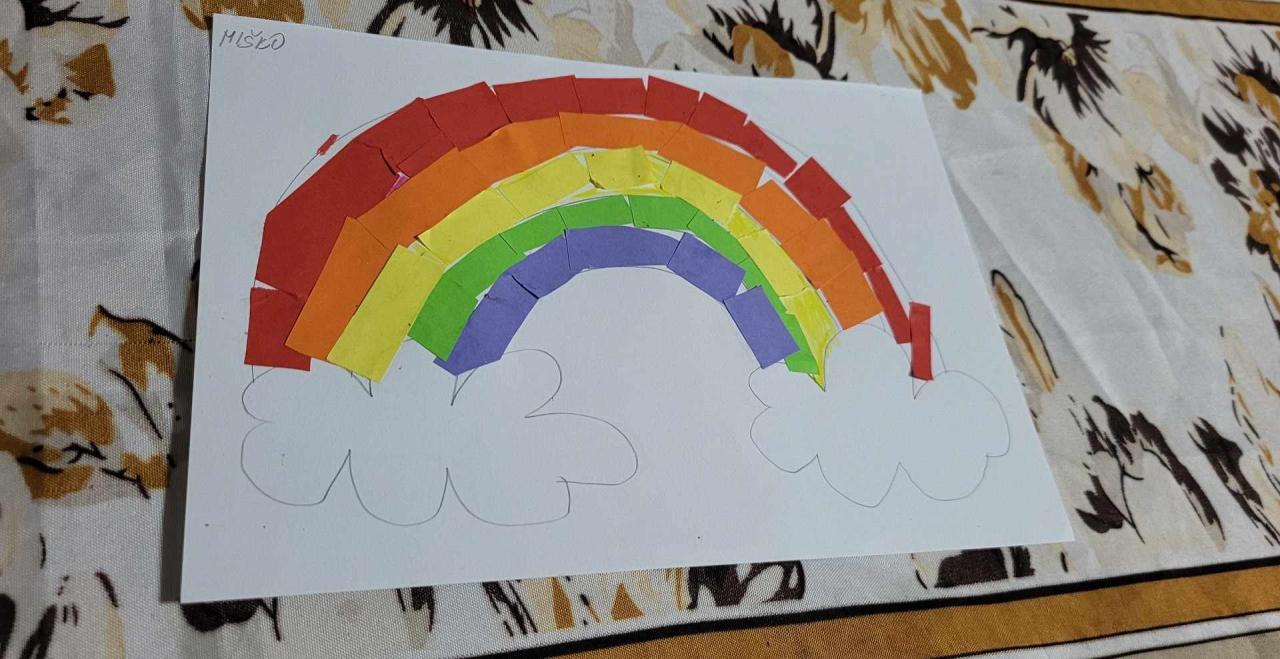 Úlohou detí bolo vytvoriť z farebného papiera dúhu, ktorú im predkreslili rodičia.